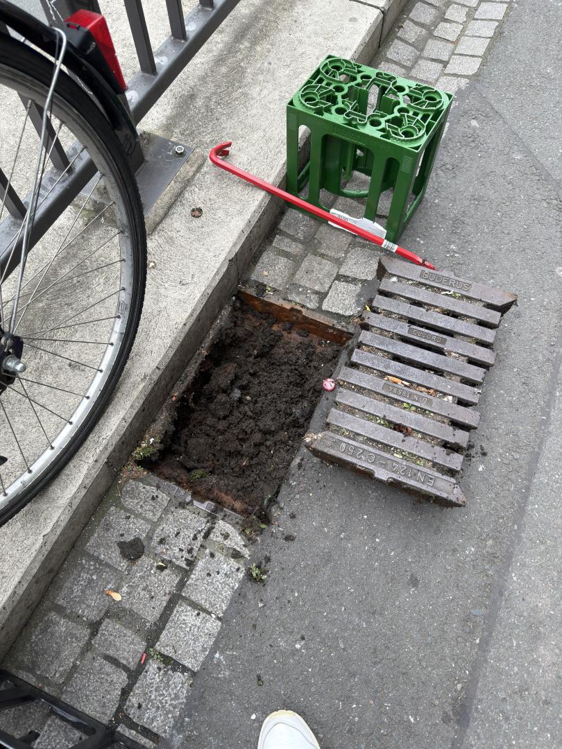 Der Sammelbehälter des Ablaufs auf dem Trottoir der Westbahnhofstraße ist wiederholt verstopft und wurde augenscheinlich seit über 2 Jahren nicht geleert.