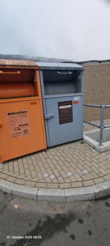 Beschreibung des Mangels Der Kleonschrott & Elektrokleingeräte Container ist seid Wochen verklemt, man kann seinen Kleinschrott nicht ordnungsgemäß entsorgen. Bilder des Mangels Details des Mangels Kategorie Sonstiges Status Geschlossen Abteilung Elektroschrott, Altkleidercontainer, Sondermüll Geokoordinaten 50.869383356219, 11.566516346332 50.869383356219, 11.566516346332 Anmerkungen / Status Änderungen 01.10.2025 - 08:07 Der Mangel "#18734-2025" wurde gemeldet. 01.10.2025 - 08:43 Zeitnahe Reparatur durch Kommunalservice Jena veranlasst. 01.10.2025 - 08:43 Der Status des Mangels "#18734-2025" wurde von "Gemeldet" zu "Geschlossen" geändert. 01.10.2025 - 08:43 Die Kommentarfunktion wurde deaktiviert. Kommentare