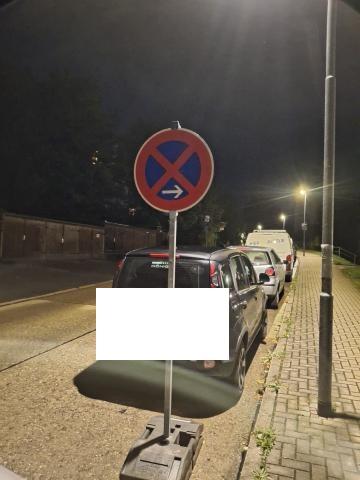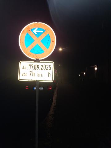 mir ist in der Ottogerd-Mühlmann-Straße Nr. 2 ein Verkehrszeichen (Zeichen 283 – Absolutes Haltverbot mit Pfeil nach links) aufgefallen, das ein unvollständiges Zusatzzeichen trägt:
