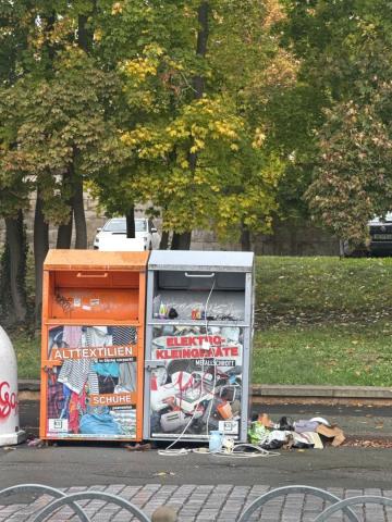 Beschreibung des Mangels Überfüllter Container Bilder des Mangels Details des Mangels Kategorie Müll Status Geschlossen Abteilung Elektroschrott, Altkleidercontainer, Sondermüll Geokoordinaten 50.931627852376, 11.576460623839 50.931627852376, 11.576460623839 Anmerkungen / Status Änderungen 08.10.2025 - 09:50 Der Mangel "#18786-2025" wurde gemeldet. 08.10.2025 - 14:29 Die Kommentarfunktion wurde deaktiviert. 08.10.2025 - 14:29 Der Status des Mangels "#18786-2025" wurde von "Gemeldet" zu "Geschlossen" geändert. 08.10.2025 - 14:29 Zeitnahe Beräumung wird durch den Kommunalservice Jena veranlasst. Kommentare