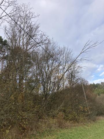 Baum liegt in der Stromleitung.