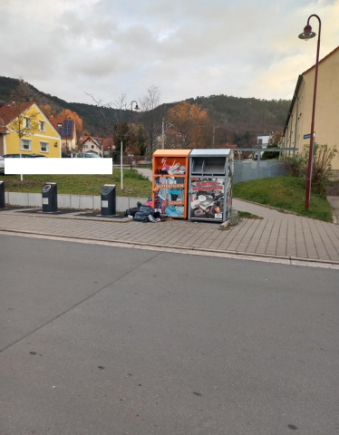 Leider schon wieder lauter Müll rund um den Altkleidercontainer. Container befinden sich gegenüber des Netto-Markendiscount Parkplatzes.