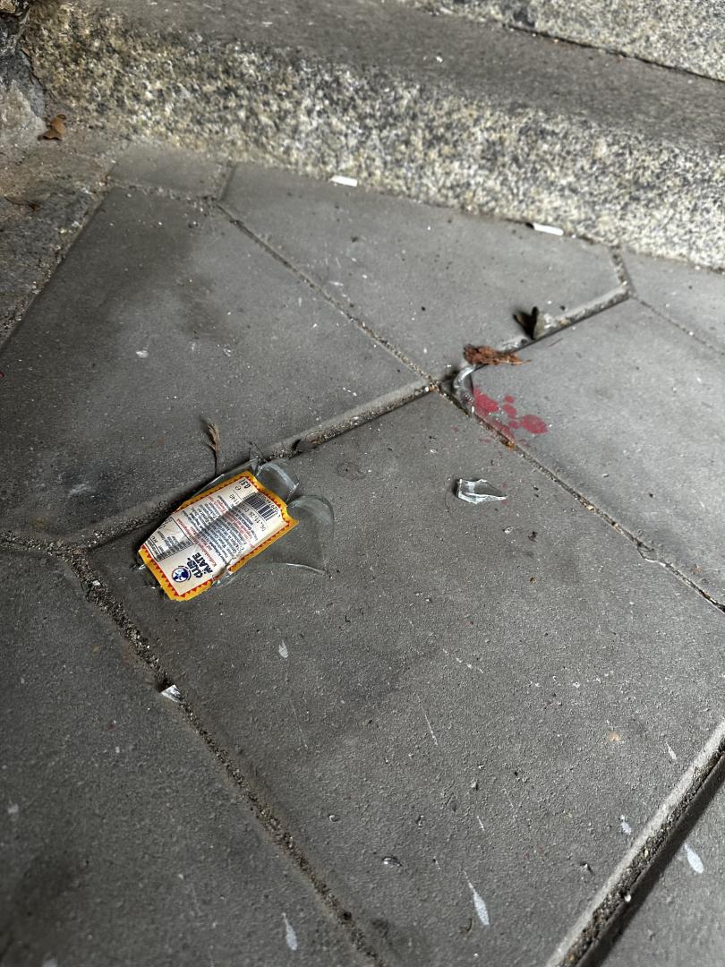Überall liegt Müll und teils Glasscherben, es sind auch rundherum Graffitis gesprüht. Sieht einfach nur assi aus der Durchgang.