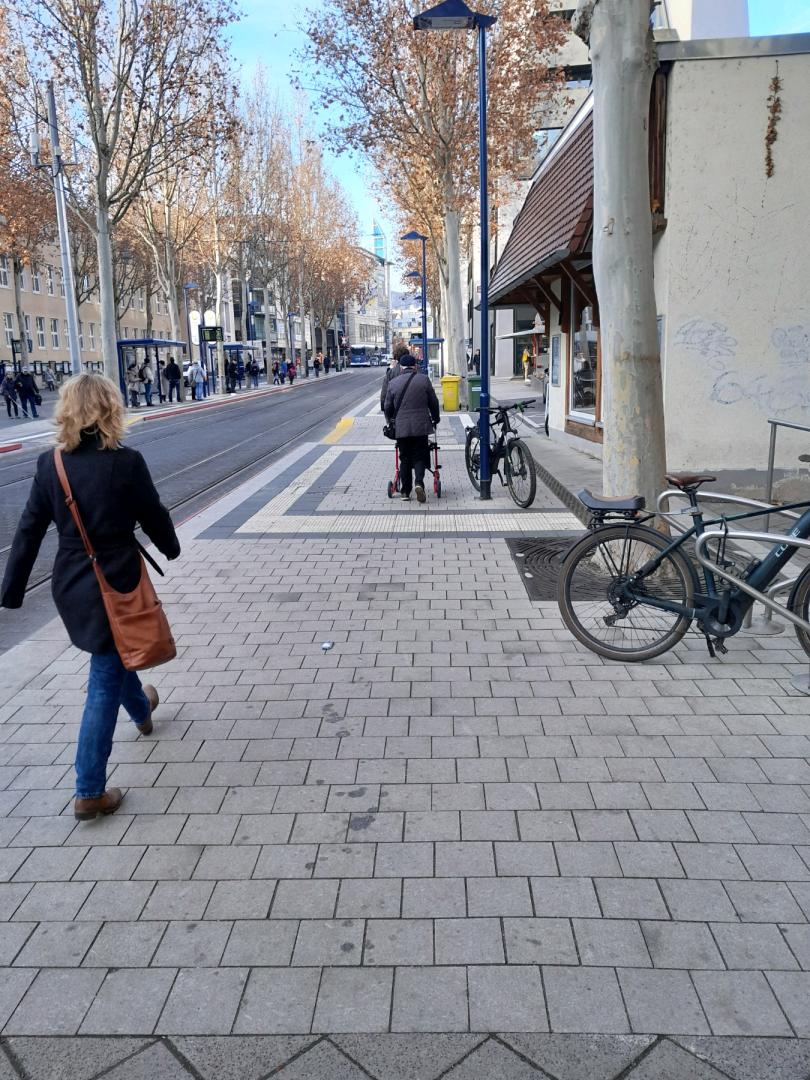 Diverse Fahrräder sind an Lampen festgemacht und behindern die durchwegung für fussgänger im allgemeinen und mobilitätsbeeinträchtigten Menschen im besonderen!. Bitte zeitnah entfernen