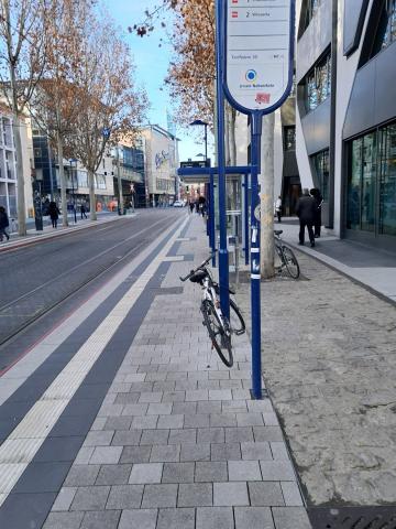 Man könnte es sich ja einfach mal anschauen. Die Durchwegungen von der Haltestelle in Richtung Markt, WG CZ usw. Fahrräder haben an Lichtmasten nichts zu suchen wenn sie andere BEHINDERN