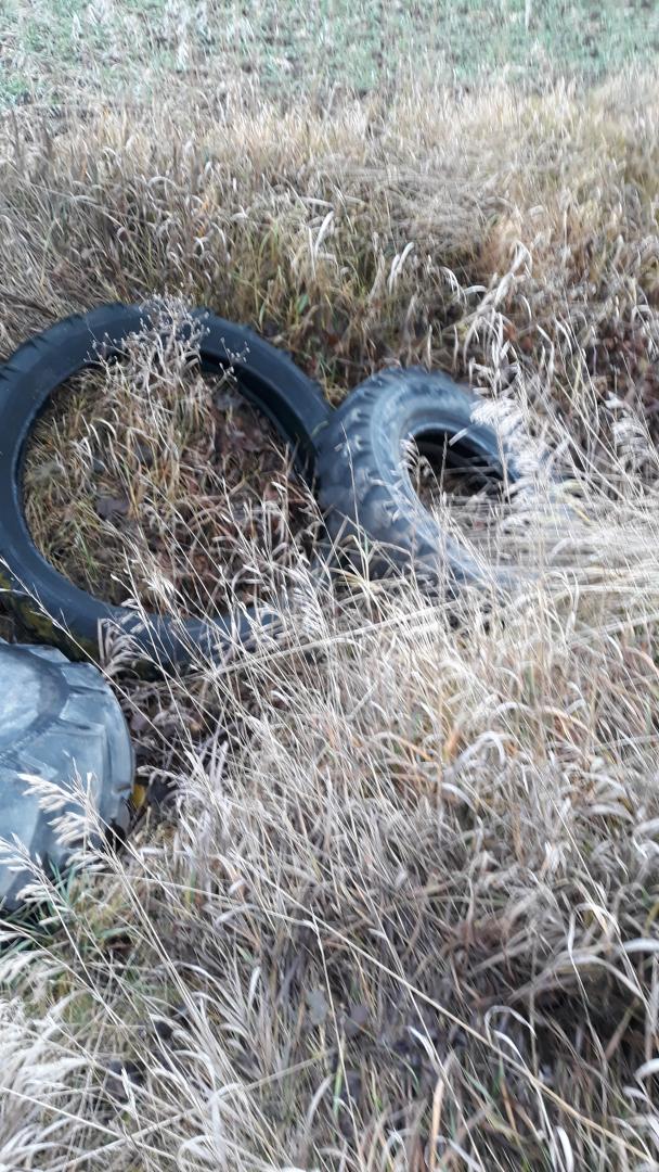 Landmaschinenreifen im Graben in der Nähe vom Gülle Behälter am isserstedter Wald.