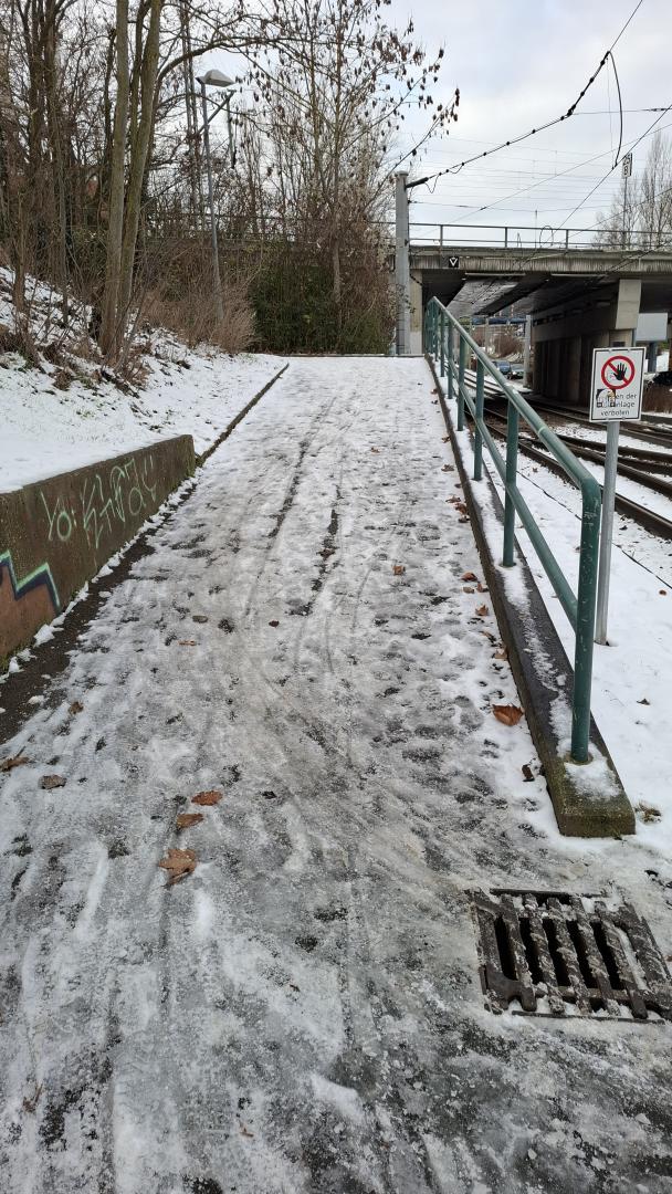 Der Weg und die Fußgänger- und Fahrradauffahrt von der Sparkassenarena kommend, über die Lobedaer Straße hinweg zum Grillenweg hoch sind nicht geräumt und eine Gefahr für die Verkehrsteilnehmer.