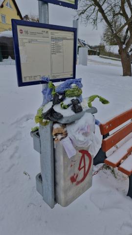 Die Fotos sprechen für sich. Der mit hundekot überfüllte Mülleimer an der Bushaltestelle in cospeda ist eine Zumutung.