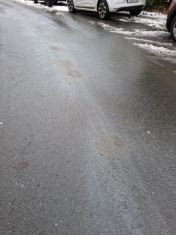 Ölspur direkt am Beginn des Forstwegs