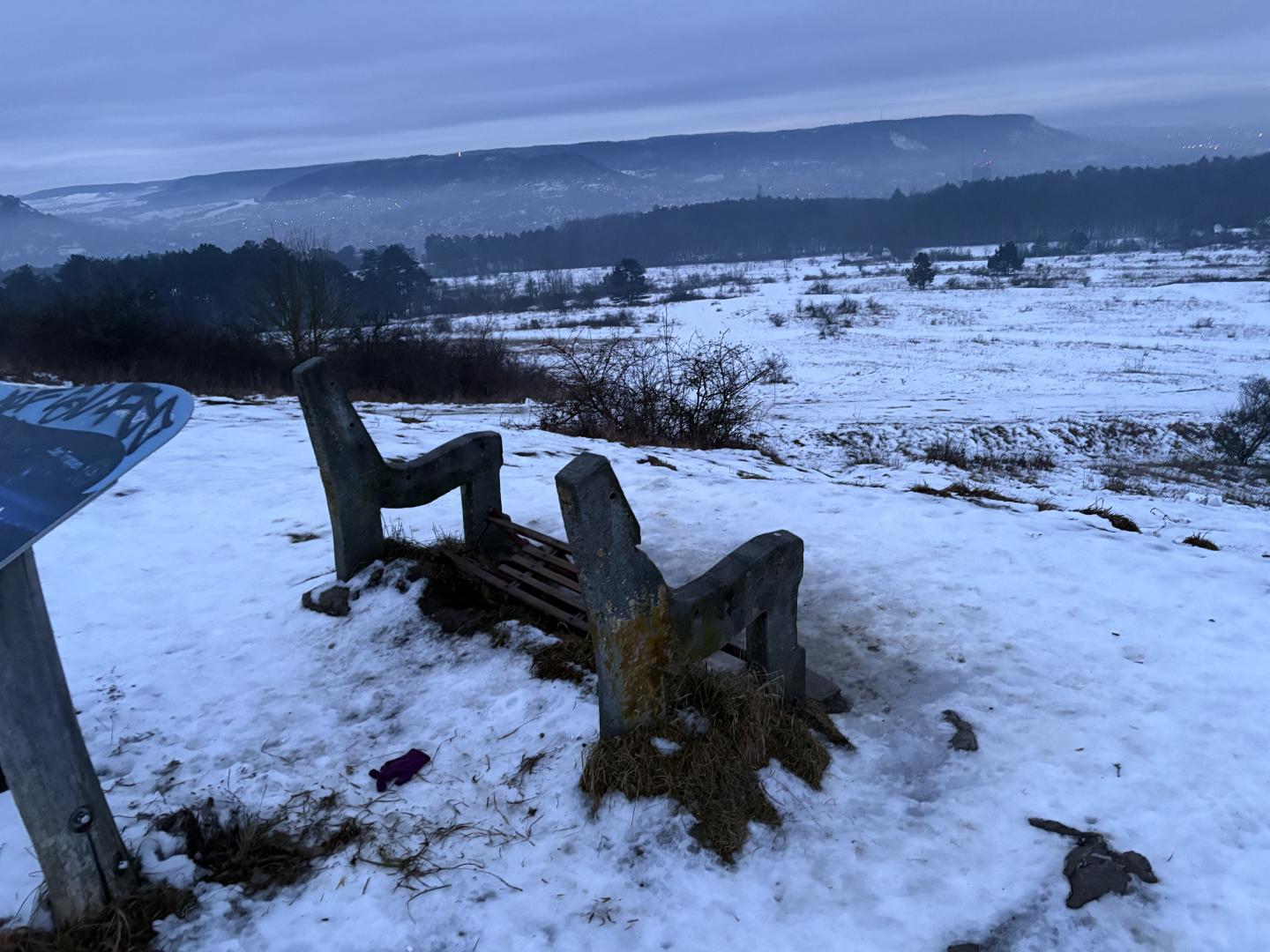 Die Bank direkt am Napoleonstein ist kaputt. Dürfte erst kürzlich passiert sein, Mitte der Woche, war sie noch in Ordnung.