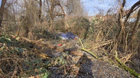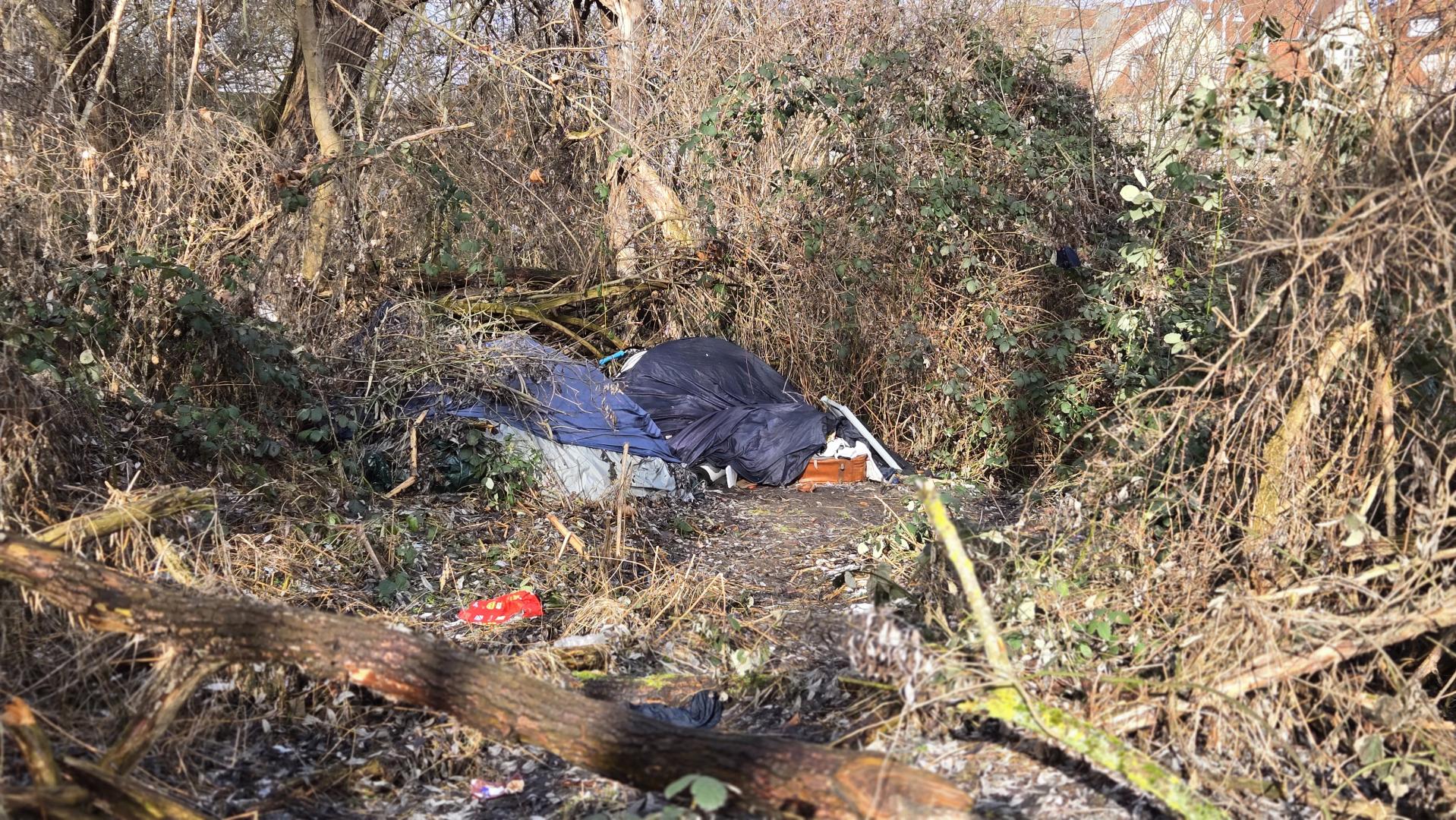 In der Saaleaue wurde mehrere größere Berge oder Zelte voller Müll und Kleidungsstücke abgelagert. Sie sind von der Straße aus nicht zu sehen, man kommt aber über einen Trampelpfad vom 1716 Denkman an ihnene vorbei. Die Kleidungsstücke liegen auch überall in der Aue verteilt. Einige haben starke Schimmelspuren