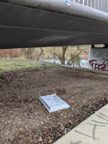 Im Paradies liegt seit ca. 2 Wochen ein entsorgter Heizkörper, an der Brücke hinter dem Stadion.