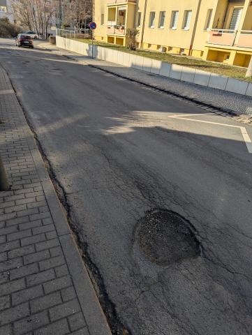 Vielen Dank für die Meldung. Unser Bauhof wurde bereits mit der Reparatur beauftragt. Diese wird allerdings erst passieren, wenn es wieder Heißmischgut gibt.