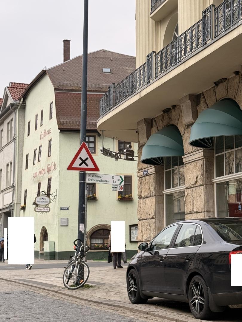 Zitat: "Vielen Dank für Ihren Hinweis. Fahrzeugführer aus Richtung Paradiesbahnhof müssen jetzt den von rechts kommenden Fahrzeugen aus der Straße Holzmarkt Vorfahrt gewähren. Dies ist eindeutig durch das Verkehrszeichen 102 "Kreuzung mit Vorfahrt von recht" geregelt. Für die Fahrzeugführer aus Richtung Post hat sich nichts geändert! Radfahrer aus der Neugasse, welche entgegen der Einbahnstraße fahren dürfen, fahren über einen Abgesenkten Bord und müssen somit Vorfahrt beachten. FD Mobilität"