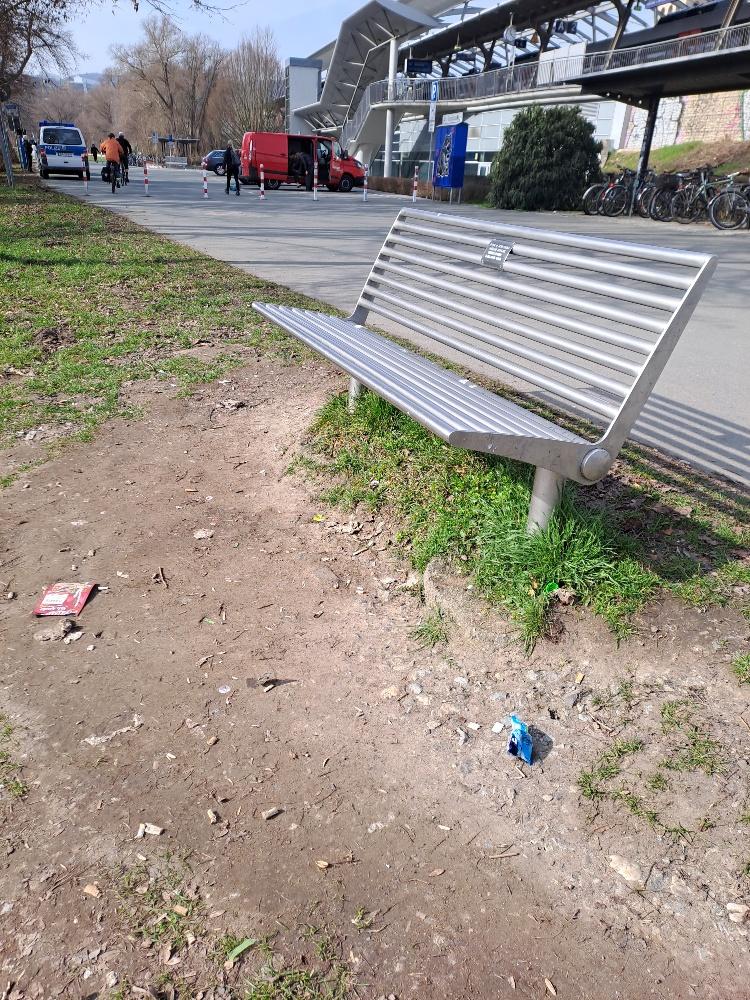 Am Paradieswehr (Bahnhofseite) steht eine sehr schöne und stabile Bank. Diese kann jedoch nur eingeschränkt genutzt werden, da selbst bei größeren Leuten die Füße in der Luft hängen. Es wäre schön, wenn dort eine Erhöhung des Bodens erfolgen würde oder die Bank versetzt wird.