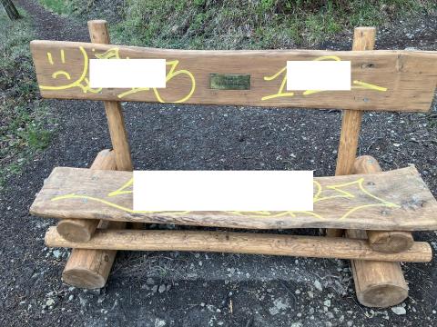 Die erst neu sanierte Bank von euch, ist nun ganz cool besprüht. Es ist die Bank mit der Nr. 250. Lobdeburg hoch und Wegweiser Richtung Ilmnitz, nach etwa 600m. Die Farbe ist 5 Tage alt, vielleicht bekommt man sie mit einem Verdünner