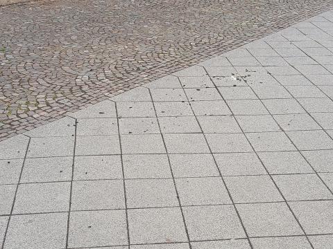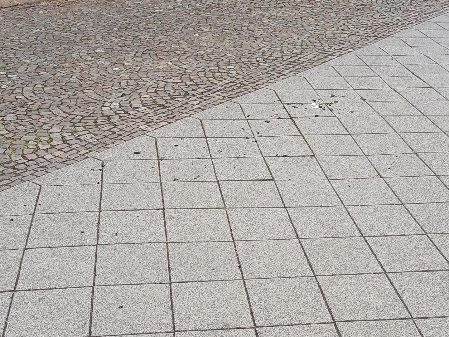 Glasscherben auf Gehweg