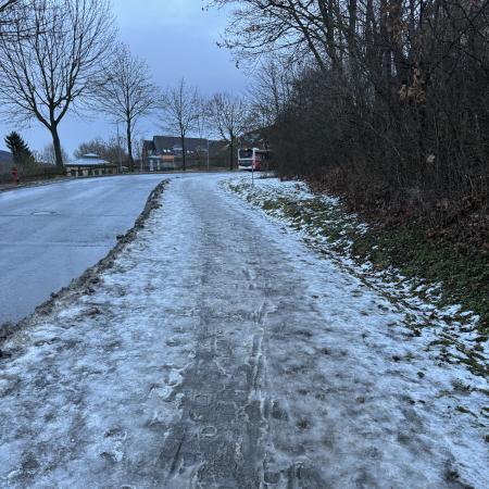 Der Fußweg an der Straße Rautal ist nach wie vor gar nicht beräumt, bestreut oder sonst etwas. Es ist Spiegelglatt, sodass ich heute morgen, 14.01., als ich meine große Tochter in die Schule gebracht habe, weggerutscht und gestürzt bin. Da ich mich an meiner großen Tochter etwas abfangen konnte, ist meinem Baby das in der Trage war, zum Glück nichts passiert.