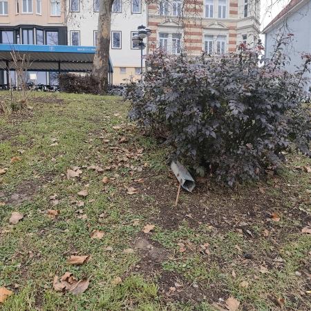 In der Saaleaue wurde mehrere größere Berge oder Zelte voller Müll und Kleidungsstücke abgelagert. Sie sind von der Straße aus nicht zu sehen, man kommt aber über einen Trampelpfad vom 1716 Denkman an ihnene vorbei. Die Kleidungsstücke liegen auch überall in der Aue verteilt. Einige haben starke Schimmelspuren
