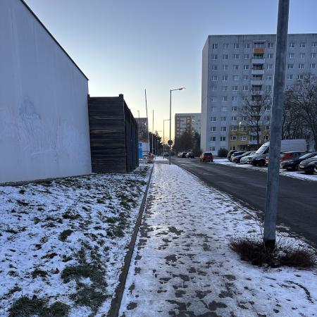 Dieser Weg ist meines Erachtens ein öffentlicher Fußweg, der keinem Anlieger gehört. In den letzten Tagen war dieser Fußweg sehr gefährlich, weil er mitten drin vereist war und noch ist. Hier sollte daher ein Winterdienst stattfinden. Oder alternativ eine Streukiste aufgestellt werden, dass man selbst die gefährlichen Stellen betreuen kann (ich habe leider keinen Kies zuhause).