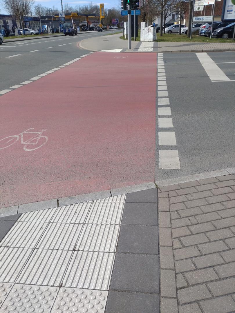 Ist vielleicht kein Mangel, aber ich frage mich, wo man als Fußgänger, vielleicht noch breiter gefächert, mit Kinderwagen, Kind an der Hand oder mit Hund an der Seite hier die Ampelkreuzung überqueren darf. Ich frage, weil ich erfahrungsgemäß von Fahrradfahrern "aus dem Weg geklingelt" werde weil "das ist ein Radweg!" ist bei solchen Zeichen, auch wenn es ein geteilter Radweg/Fussweg ist. Rein aus Interesse und ich möchte sicher gehen.