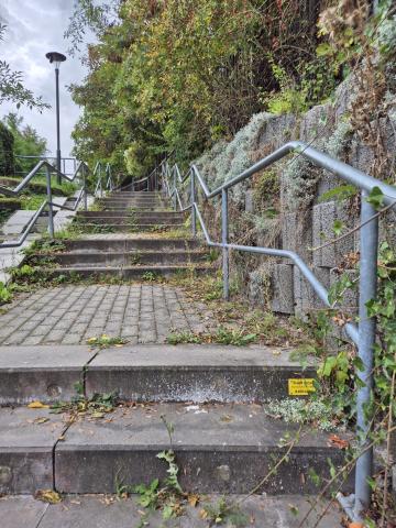 Treppe B30031 zwischen Ernst-Bloch-Ring und Nitzschestraße stark von Unkraut befallen