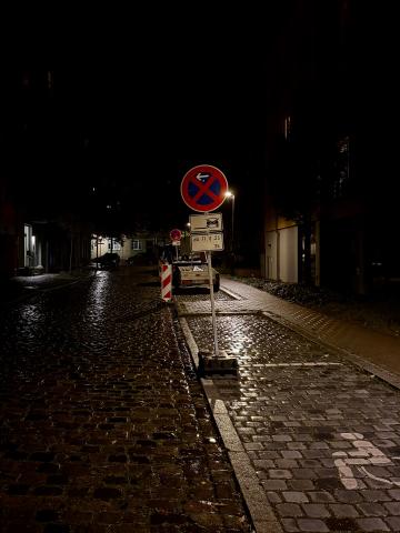 Das VZ für das temporäre Halteverbot an der Ecke Beutnitzer Straße / Schenkstraße ist im Laufe der letzten Woche um einen Parkplatz Richtung Kreuzung „gewandert“.