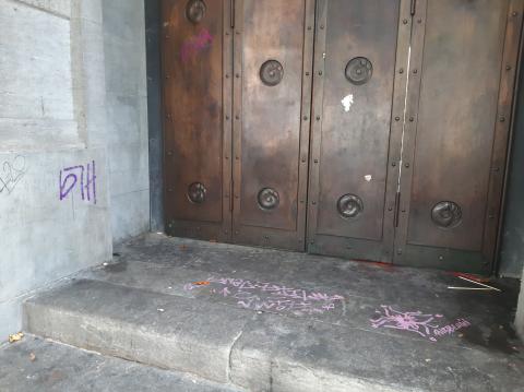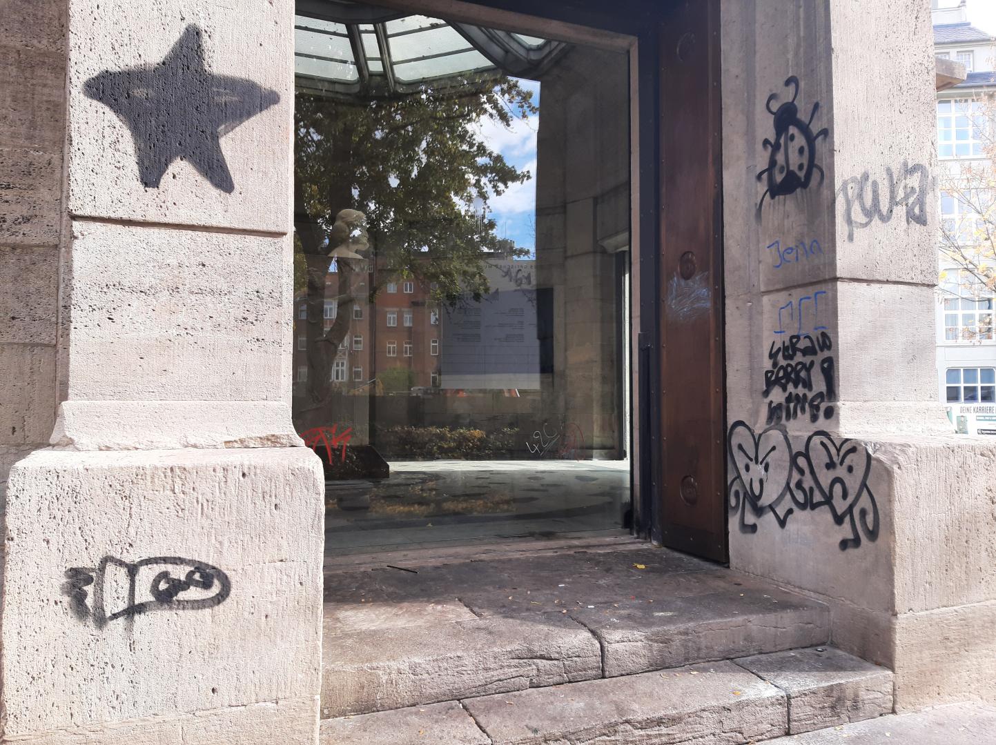 Mal wieder, sinnlose Schmiereien am Denkmal.