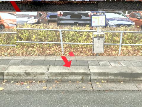 An der Haltestelle Talschule der Buslinie 16 stadtauswärts ist das markierte Bordsteinelement locker. Wenn bei Regenwetter der Bus anfährt und mit dem Hinterrad über das Element rollt, kippt dieses lockere Element schlagartig und drückt das darunter angesammelte Schmutzwasser durch die Fugen nach oben. Personen, die sich zufällig daneben aufhalten, werden bis zur Mütze damit bespritzt.