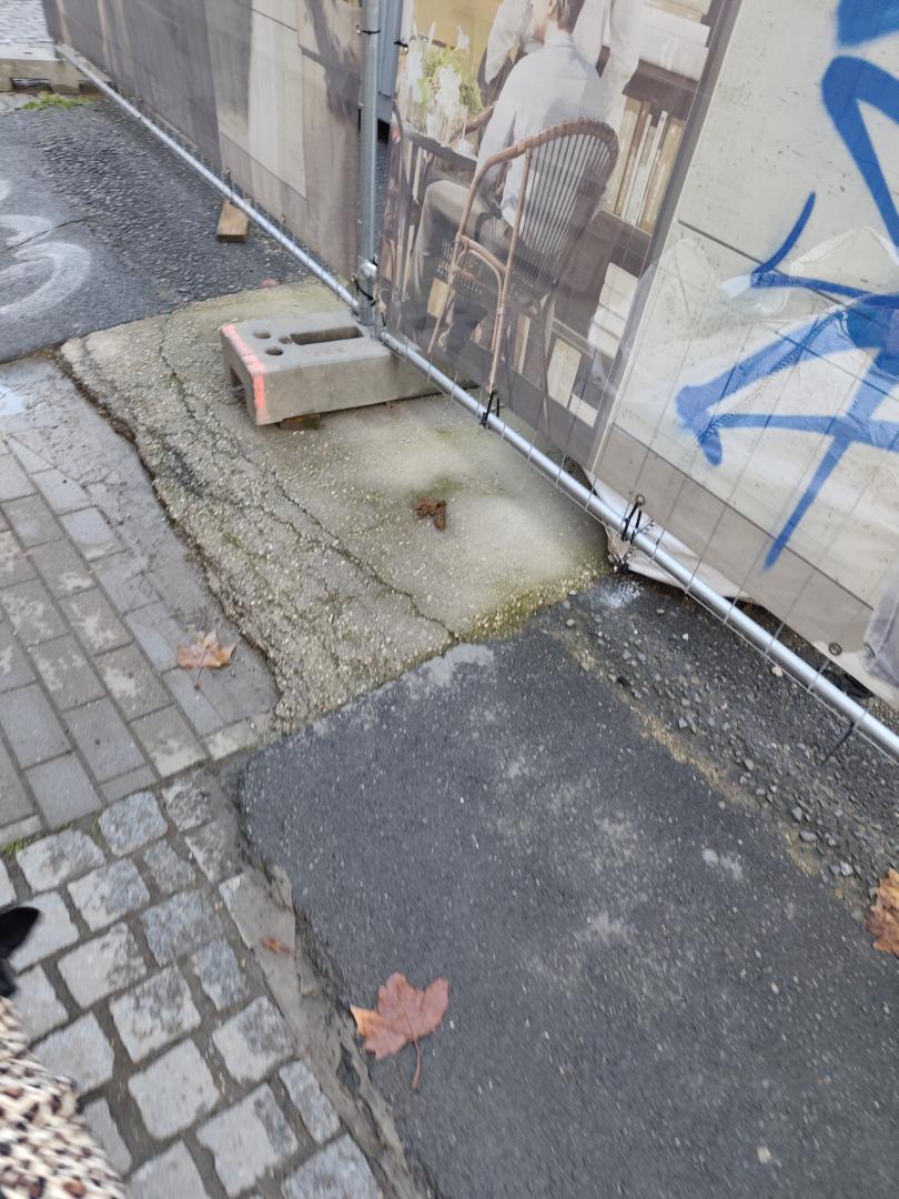 Beschreibung des Mangels Am Bauzaun liegt seit 1 Woche diese diese tretmiene, kann man die nicht beseitigen? Bilder des Mangels Details des Mangels Kategorie Straßenreinigung/Winterdienst Status Gemeldet Abteilung Straßenreinigung/Abfall -Verteiler Geokoordinaten 50.928724456895, 11.589333513779 50.928724456895, 11.589333513779 Anmerkungen / Status Änderungen 03.11.2025 - 13:26 Der Mangel "#19036-2025" wurde gemeldet. Kommentare Doch, Permalink natürlich können Sie diese beseitigen! Antworten You must have JavaScript enabled to use this form. Ihr Name Betreff Kommentar Hilfe zum Textformat Klartext Keine HTML-Tags erlaubt. Zeilenumbrüche und Absätze werden automatisch erzeugt. Website- und E-Mail-Adressen werden automatisch in Links umgewandelt.