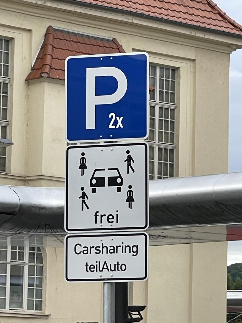 Inzwischen habe ich festgestellt, dass auch viele andere Carsharing-Plätze in der Stadt (alle?) falsch ausgeschildert sind. Da die Kombination "Parkplatz" mit "außer Carsharing" laut StVO nicht zulässig ist, hat es wahrscheinlich keine Konsequenzen. Es darf also jeder dort parken. Trotzdem bitte ich Sie, die Beschilderung aller Carsharing-Plätze entsprechend anzupassen, also entweder (eingeschränktes) Halteverbot mit dem Zusatz außer Carsharing oder Parkplatz mit dem Zusatz nur Carsharing.