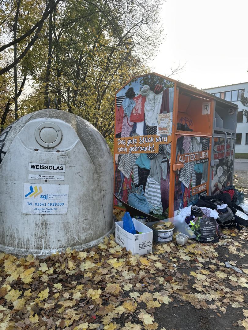 Beschreibung des Mangels Bei den Containern steht ein Haufen Müll. Auch im umkreis liegen Glasscherben und Verpackungsmüll herum. Sieht schon seit Wochen so aus . Bilder des Mangels Details des Mangels Kategorie Müll Status Gemeldet Abteilung Elektroschrott, Altkleidercontainer, Sondermüll Geokoordinaten 50.934176505529, 11.598326269245 50.934176505529, 11.598326269245 Anmerkungen / Status Änderungen 05.11.2025 - 15:56 Der Mangel "#19069-2025" wurde gemeldet. Kommentare You must have JavaScript enabled to use this form. Ihr Name Betreff Kommentar Hilfe zum Textformat Klartext Keine HTML-Tags erlaubt. Zeilenumbrüche und Absätze werden automatisch erzeugt. Website- und E-Mail-Adressen werden automatisch in Links umgewandelt.