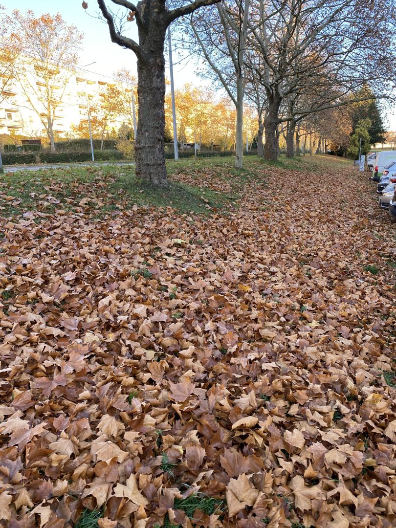 Der ganze Hang zwischen Erlanger Allee und Liselotte-Herrmann-Straße voll mit Laub, der dortigen Platanen