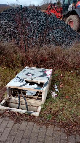 dieser Elektrokasten liegt seit der Straßenbaumaßn.seit Monaten dort.
