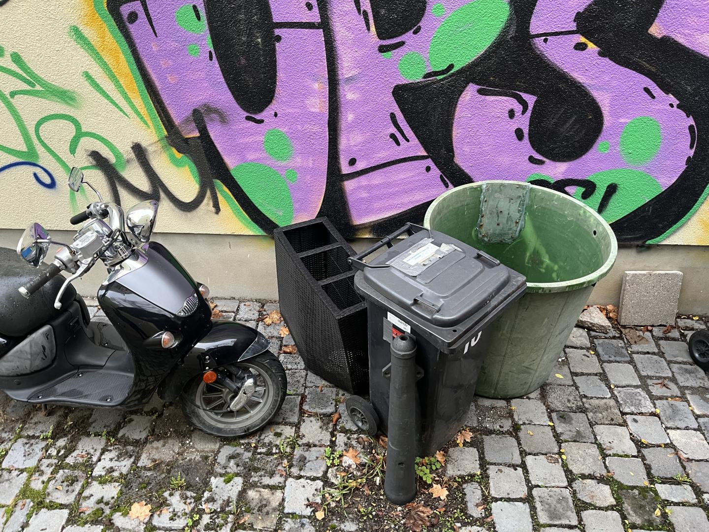 Seit mehreren Monaten vergammelte hier ein Motorroller. Als Anwohner weis ich: Dieser hat sich seit einem Jahr nicht mehr bewegt. Hier ist ein Dauerstellplatz errichtet worden.
