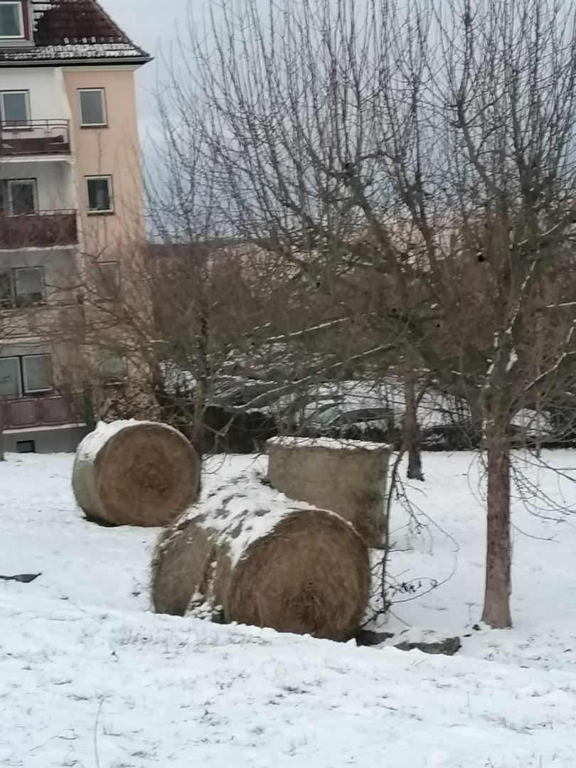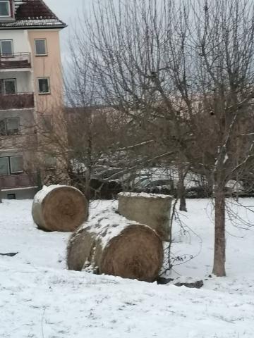 diese Strohballen befinden sich seit einiger Zeit vermutlich so nicht geplant an der oberen "Wasserachse" in Winzerla (Schrödingerstraße). Beim Schliitenfahren von Kindern und Familien wurde ich erneut darauf angesprochen.