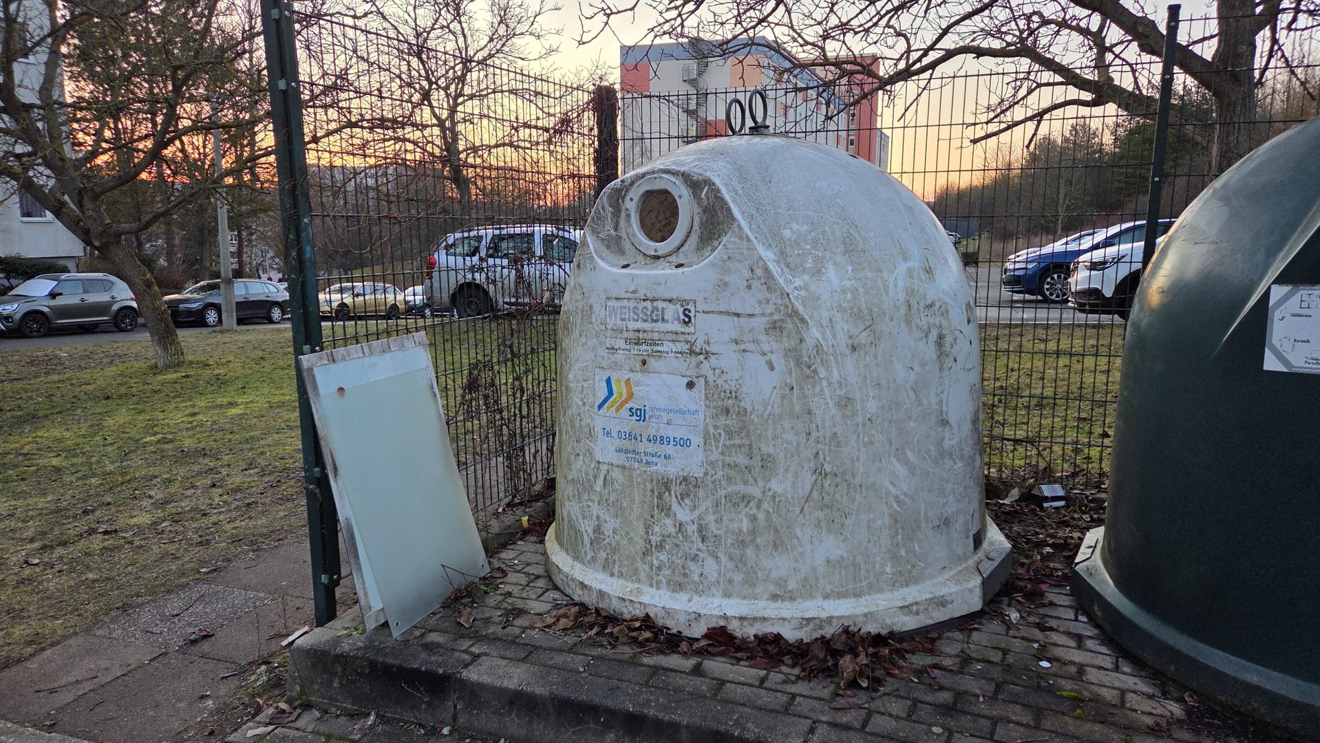Beschreibung des Mangels An diesem Glascontainer Standort wurden vor einiger Zeit 2 große Glasscheiben illegal abgelagert. Bitte beseitigen, danke. Bilder des Mangels Details des Mangels Kategorie Müll Status Geschlossen Abteilung Elektroschrott, Altkleidercontainer, Sondermüll Geokoordinaten 50.88225388451, 11.636392218866 50.88225388451, 11.636392218866 Anmerkungen / Status Änderungen 20.01.2026 - 12:38 Der Mangel "#19794-2026" wurde gemeldet. 20.01.2026 - 13:14 Zeitnahe Beräumung und Entsorung wird durch den Kommunalservice Jena durchgeführt. 20.01.2026 - 13:14 Der Status des Mangels "#19794-2026" wurde von "Gemeldet" zu "Geschlossen" geändert. 20.01.2026 - 13:14 Die Kommentarfunktion wurde deaktiviert. Kommentare