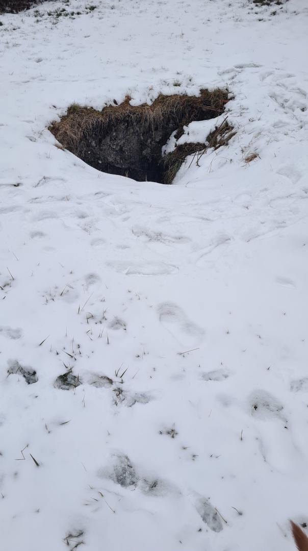 Auf Grund der Nähe zu dem Wohngebiet (Kinder) ist es angeraten den Erdfall abzusprerren und zu verfüllen.