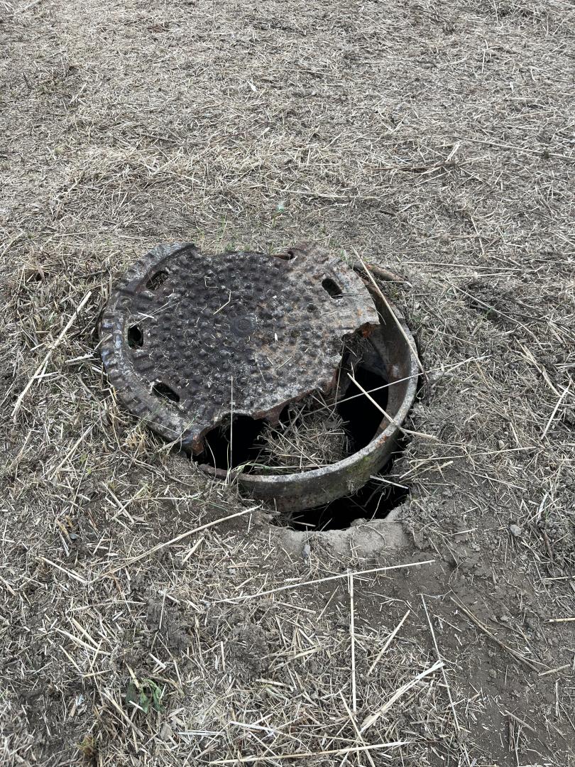 Extreme Unfallgefahr - Mehrere offene und defekte Kanaldeckel direkt neben dem Fahrrad-/Fußweg.