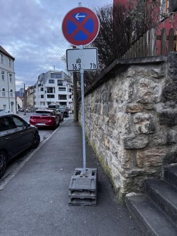 Rechts und links neben dem Hauseingang Lutherstraße 157 stehen auf dem Fußweg im Abstand von etwa 2 Metern Straßenschilder für Umleitung bzw. Strassenverengung. Das rechte Schild steht unmittelbar neben dem Treppenaufgang, im Dunkeln kann man da schnell darüber fallen. Das ist für uns als Bewohner unzumutbar, abgesehen davon das links das Schild seid fast drei Jahren steht. Neben der Unfallgefahr bildet sich hier systematisch eine Dreck und Pinkeleckecfür Hunde.