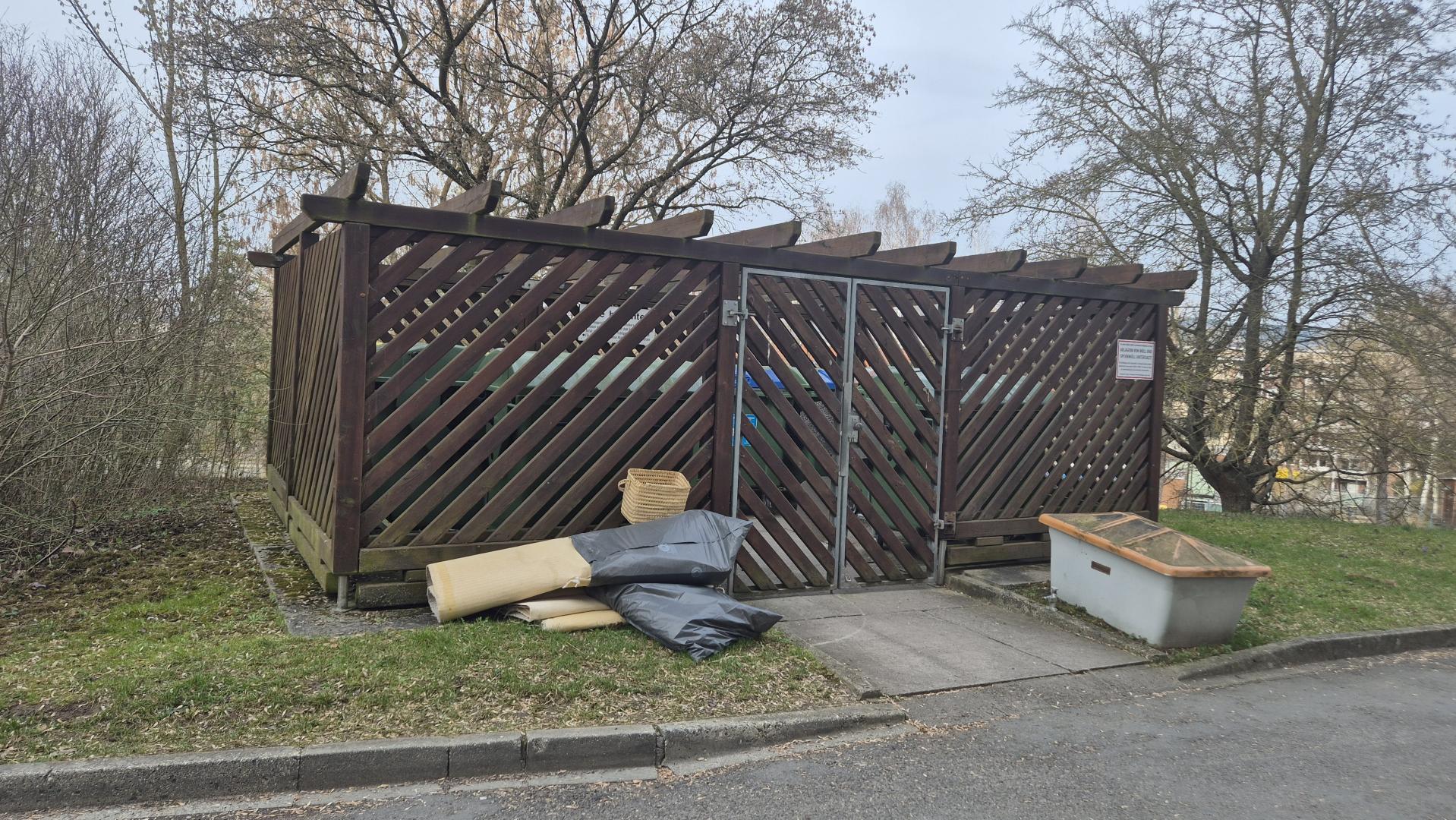 Illegal abgelegter Grobmüll (Teppichboden) am Containerplatz in der Schrödingerstr. 53, 07745 Jena