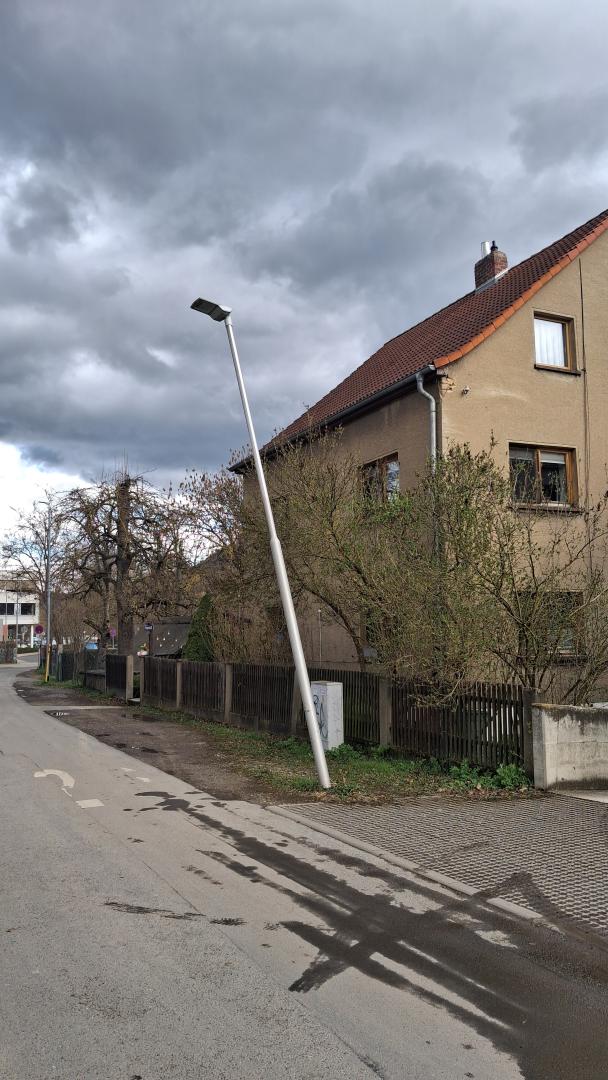 Laterne steht schief.