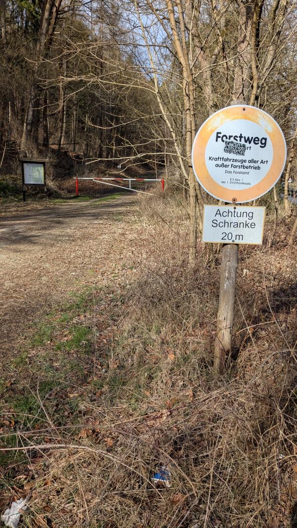Forstsperrschild F029 Parkplatz links hinter Carl-August Richtung Isserstedt: Aufkleber auf Vorderseite, Bitte entfernen.