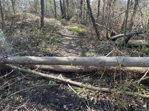 Nebenweg der oberen Horizontalen am Johannisberg, oberhalb Wöllnitz versperrt