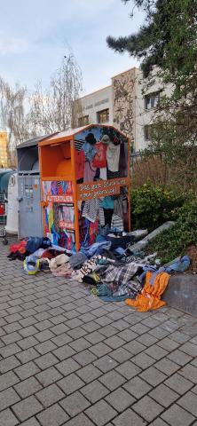 Immer wieder liegen am Kleiderconatiner unmengen an Müll und Unrat. Das ist für viele Bewohner so weder schön noch tragbar. Entweder müssen die Container öfters gelehrt, das Gebiet eingezäunt (um die Ablagemöglichkeit zu verhindern) oder die Conatiner abgebaut werden.