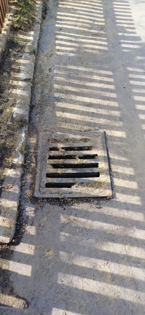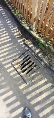 Durch Bauarbeiten in Bezug auf Verlegung von Glasfaserkabel stark verschmutzter Wassereinlauf (Gulli) durch Sand.