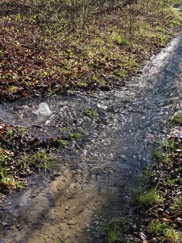 Standort des Wasseraustritts : Wasserwerk Mühltal...Weg an der Leutra Richtung Abzweig Münchenrodaer Grund (vor der mittleren Brücke)