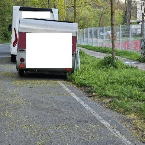 Wohnwagen steht da seit über einem Jahr und scheint auch defekt zu sein, zumindest die Bereifung