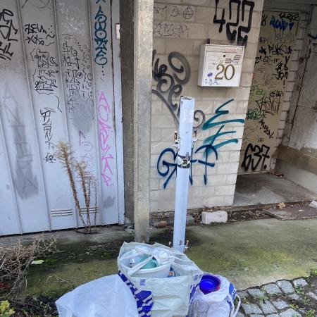 An dieser Stelle wird regelmäßig Müll abgelegt. Das letzte Mal mehrere blaue Säcke mit Klamotten. Wir haben die Anwohner im Verdacht. Vielleicht schafft ein Schreiben an den Vermieter des Hinterhauses etwas Abhilfe.